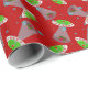 Den här inslagningen av pappra egenskaper hos aktiva utomjordingar i UFO:s uppspelning av presenter mot en röd bakgrund med snöflingor.