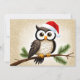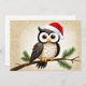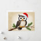En älskling, lilla uggla som bär en julhatt är överlagrad på en gyllene bakgrund med vitt snöflingor. Väldigt sött helgdag kort.