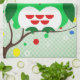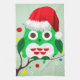 En söt grönt jul uggla på ett trendig Julgran med färggrann bollar.