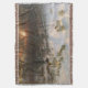 Under julen under Grenar Throw Blanket-bilden med Snö-kammusslet kan du se att lantbrukaren kommer med dagarna första hö för sin fårflock, sol stiger medan flockarna gör frukost.