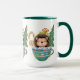 En jul, underbar lejon i kopp av glädje med julen inslag på mugg i din favoritdryck, helgdag.