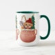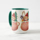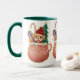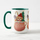 En julklapp, en fin valp i en kopp av glädje med jul inslag på en mugg av din favoritdryck, helgdag.