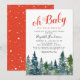 Vinter baby shower inbjudningar med akvarell julgranar, snöflingor och en personlig "oh baby, det är kallt ute"-mall.