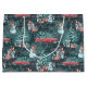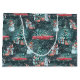 Söta och mysiga vinterscener med vita harar, snömän, vintage röd bil, träd och julrelaterade saker.