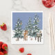 Vackra pappersservetter med ett Vinterland-tema. Söt liten hjort, ekorrar och fåglar i en skog av snötäckta tallar. Den klara blå himlen ovanför börjar visa vackra snöflingor som faller till marken. En gammal träskylt läser God Jul.