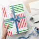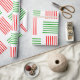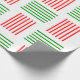Denna papper för julomslutning har en modern utformning som ser ut som en väv med rött och grönt linjer på en vit fält.