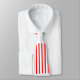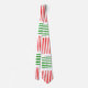 Denna slips har en modern utformning i mitten av århundradet som ser ut som en väv med rött och grönt linjer på en vit fält.