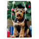 Cute Welsh Terrier sitta med ett Julgran med helgdag