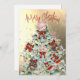 Jul Wildblomma Guld Red Träd Hälsning Julkort