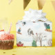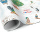 Späda vilda djur i snö med isskal, snöskartor, Julgranar, snöflingor och Glad helg.