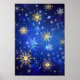 JULAFTON Blue Background med Golden Snöflingor Poster