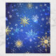 Blå julbakgrund med guld och vitt smycke snöflingor. Golden snöflingor. JULAFTON.
