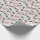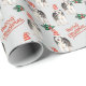 En vacker Hund i Siberian husky bär en röd och vit, strimlad julhatt i mönster på denna papper för julomslutning. Tillsammans med hund är grönt en grov sprit med röda bär och röd manustext som säger "God jul". Bilder och text placeras på silver grått-bakgrunden.