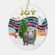 En guineansk Gris står i centrum för denna formgivning för att hedra minnet av den glädje som vår julmusik ger - med färgstarka musik noter, hjärtan och stjärnor. Ord längst upp säger JOY.