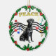 Julmusik med en svart Labrador Retriever, en duva, en snögubbe, Julgran och färglöst musik noter, en design som påminner oss om den glädje som vår julmusik för med sig.