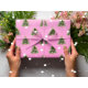 Denna pappra julomslutning har en vacker vattenfärgsillustration av gräs träd, som har enkla och elegant röda dekorationer. Det skapar ett modernt, minimalistiskt mönster i ljus rosa bakgrund.