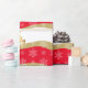 Omslagning papper som visas i en stor fet roligt i snabb linjer av rött, vitt och ett projektionsytt guld färg med made guld renar och vitt snöflingor över rand. Papper projektionsyta visas. Färg: Röd, vit och matte Guld färg. Anpassa det här objektet eller köp som det är.