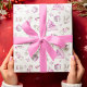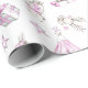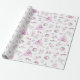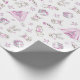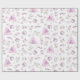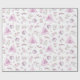 Den här rosa julomslutningen pappra har en underbar vattenfärg mönster med skogar, presentlådor, en teepé och stjärnor. Det mest framstående färg är ljust rosa och vitt.
