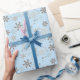 Helgdag som omsluter papper i en ljusblå bakgrund färg med en julklapp i snöflingorna. Anpassa den här pappra eller köp som det är. Lagrar image www.freepik.com