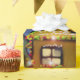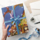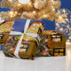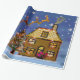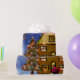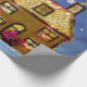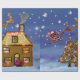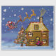 Den grafiska illustrationen av Santas sleigh, julgran, dekorerade huset, i en snöig vinter landskap. Sjalen upp din gåva i detta högkvalitativa glansiga papper och ljusnar upp julhelgen.