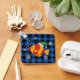 En illustration av en orange av den tropiska gulten under havet med bubblor på en blå svart utcheckad buffel mönster-bakgrund. Den här söta tecknaden är en presentidé för julafton älskare, älskare och snorkeling älskare.