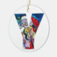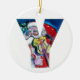 Y alphabet brev jul-monogramdesign .Colorful, whimsisk och konstnärlig akrylmålning ,Santa leker violin i vinternatten, en uggla, blommigt, prydnadsföremål, vinterplantor, hollbär i klarrött,grönt, vitt,blått,gult färg. av Bulgan Lumini (c) com