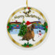 En brun Dachshund i en julhatt står i fokus för denna design som görs för att hedra minnet av den glädje som vår julmusik ger - med färgstark musik noter, hjärtan och stjärnor och en fredsduva.