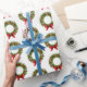 Helgdag presentförpackning är papper och visas med en fin julkrans med polkagrisar tryckta på vit bakgrund. Anpassa den här pappra eller köp som det är.