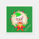 Klar julklapp som håller en presentlåda i mitten av en gräs-krans med guldfärgad och röd bollar omgiven av stjärnor på gröntens Pappersservett. Text kan vara personlig. Ha en underbar jul!