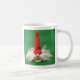 Denna mugg har ett foto av en julälva som inspireras av svenska skogsmarkvarelser som kallas Tomte. Högväxt rött lock, vildvithår, räcka-sticka brun tröja på ljust - grön bakgrund.