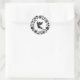 Sprid lite julglädje och fira den festliga säsongen med detta söta klassiska runda klistermärke, prytt med svart silhuett av flygande ängel med trumpet och svart snöflinga krans på en vit bakgrund. Det är ett enkelt sätt att pigga upp kuverten till dina julkort, men också en vacker finish för dina julpresenter.