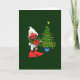 En lycklig vittecknadanka ha på sig en järnekkran och visar av hans julgran.