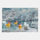 Ha på sig paddlar rubber duckies för gullig leksakgult santa hattar och runt om en snöig handduk för helgdag för vinterdammjul