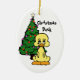 Julankaprydnad. Tecknadanka framme av en tänd julgran