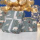 Den kommande julomslutningen papper med arktiska djur polar björn, kanin och uggla på snöblå grått bakgrund.