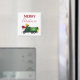 En söt illustration av julåtervinningen i sopor lastbil som bär en julhatt och som i julklapp dekorerade ljus med ord "God jul". En perfekt julmagnetdesign för stora eller små entusiaster i sopor lastbil, flickor eller pojkar.
