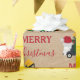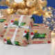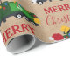 En söt illustration av julåtervinningen i sopor lastbil med en julhatt och dekorerad i julklapp ljus med ord "God jul" och kraftbrunt papper synbakgrund. En perfekt julomslutning papper för sopor lastbil entusiaster stora eller små, flickor eller pojkar.