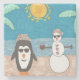 Snögubbe och pingvinvakter på stranden. Vad skulle kunna bli mer roligtar?