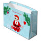 Julbaby, hjärtan och tall på en himmelsk ljusblå bakgrund Presentpåse. Texten kan anpassas. Må kärlek råda överallt!