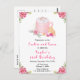 Denna eleganta och festliga födelseinvitation har en akvarellkopp med varm kakao och marshmallows, pepparkakor och vackra rosa julstjärnor. Texten kombinerar handskriven skrift och sans serif-teckensnitt för en stilren och modern look. Detta är perfekt för en julfirande födelsedagsfest.