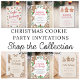Denna inbjudan till julbakelseutbytesfest är dekorerad med akvarellbakelser, järnek, mistel, bär och stilfull scripttypografi.