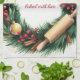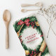 Julbakningskrans gjord med kavlingspinn, träsked, kanelpinnar och dekorationer. Festlig cirkel ramar in julig köksscen i röda gröna guldfärger. Absorberande bomullshandduk suger upp spill eller torkar händer snabbt. Hänger rakt på draghandtag eller ugnshandtag. Tillverkare lager för julmarknader eller familjeutbyten. Namnområde tar upp till 12 tecken i glad typsnitt. Koordinater med Printable Pretty SVGs för kakor etiketter eller förkläden. Färger håller starkt genom maskintvätt och tung användning. Kransform nickar till kakformar och buntformar. Handduk täcker diskar under pajberedning eller sveper färska limpor. Små företagsförsäljare säljer i paket med muggar för present