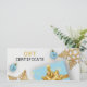 Elegant högkvalitativ semesterdesign med glamourösa gyllene glitterflingor, blå julgranskulor och en blå presentlåda på en ljusgrå bakgrund. Detta festliga säsongspresentkort är perfekt för ditt lilla företag eller som en gåva till vänner och familj.