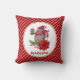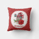 Kute julbjörn med halsduk, Julklapp och poinsettia. Bakgrunden är röd med vitt diagonalt rand. Anpassningsbar ditt namn