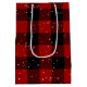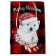 Polarna bär med julklappen Jultomten på röd och svart buffelbaksida och snöflingor. Text kan ändras eller tas bort.