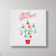 Ett obart gren-vitt Julgran med färgstarka dekorationer av lökar-dekorationer (rött, grönt blått) och gult rosett band. Träd är planterat i en rödpott. Utformningen kompletteras med en "God jul"-rubrik. Önska din familj och dina vänner i God jul på ett minimalt sätt.