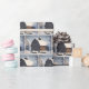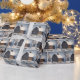 Rustiska trälador på vintern med texten från Lycklig Helgdag, träd och snöflingor.