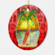 glad helg från de varma sandstränderna på din favoritstrand på tropiska öar. Handflatan träd dekorerade med julprydnader och ljus, med en reflextavla som lutar mot Julgran framför en solnedgång över havet. Röd bakgrund i färg på hawaiiska honu-sköldpaddor och Tiki Mask