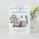 Vi dekorerar nya hallar för julen Flyttmeddelande Julkort. Favorit familjefoto på baksidan. Hem Jul Snöig Scen Flyttmeddelande kort.