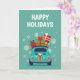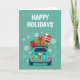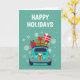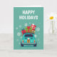 Skicka festlig cheer med det här charmerande julkortet med en bil som kör iväg med en skorsten av färgat presenter som är bunden till tak. Den lekande designen fångar julhelgens glädje och entusiasm och skapar den perfekt för att sprida varmt önskemål till vänner och familj. Ett härligt val för alla som kärlek, viskade, resande inspirerade helgdag.